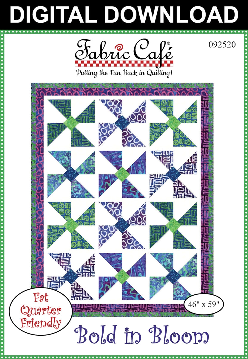 You’ll love how easy it is to make a beautiful quilt with this economically priced pattern! Just choose 12 fat quarters and 1½ yards of fabric, set aside a few relaxing hours, and you’ll have a stunning quilt top complete with binding and borders. With a clear assembly diagram and simple, step-by-step directions, you’ll breeze right through the cutting and piecing!