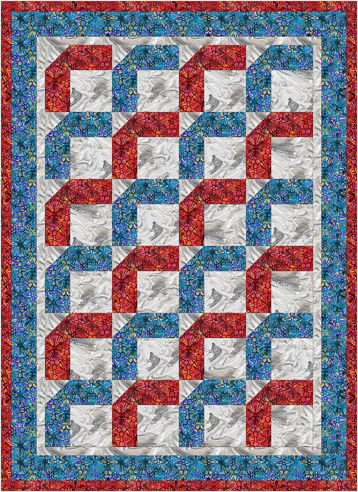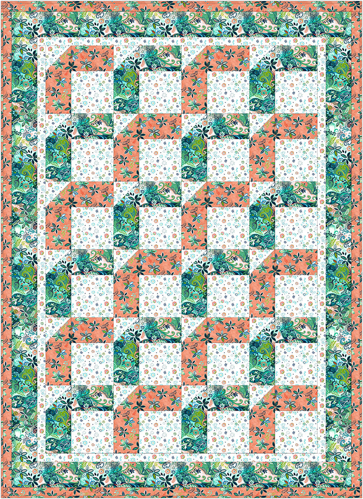 Fabric Café is excited to share our next free pattern! We rotate our free quilt patterns throughout the year, pulling from our library of over 100 patterns. Fabric Café quilt patterns are quick and easy; you simply take 3 one-yard cuts of fabric plus a few hours and make a beautiful quilt top with binding and borders. The pattern includes an assembly diagram and step-by-step directions that make your cutting and piecing a breeze!