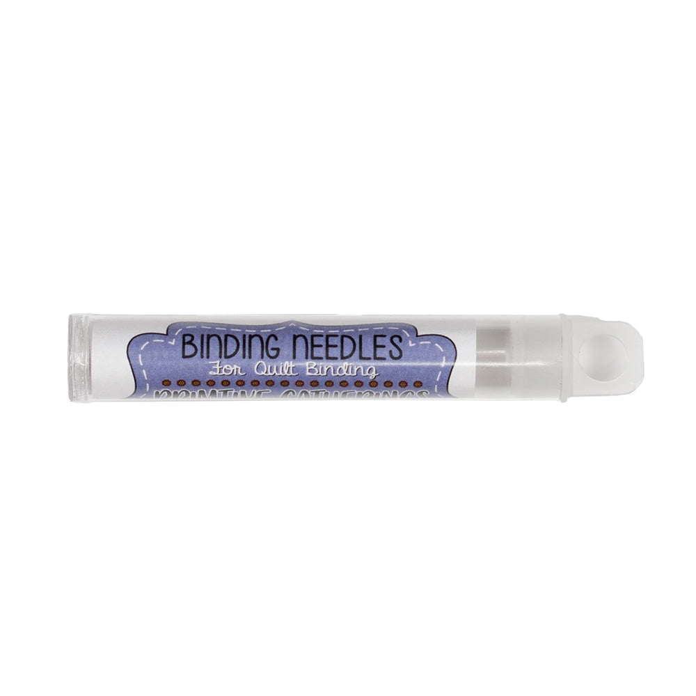 These binding needles are going to change the way you feel about hand binding. This needle is long and thin but will not bend like a straw needle. The large eye makes threading heavier quilting thread easy. Each Tube contains 12 needles.