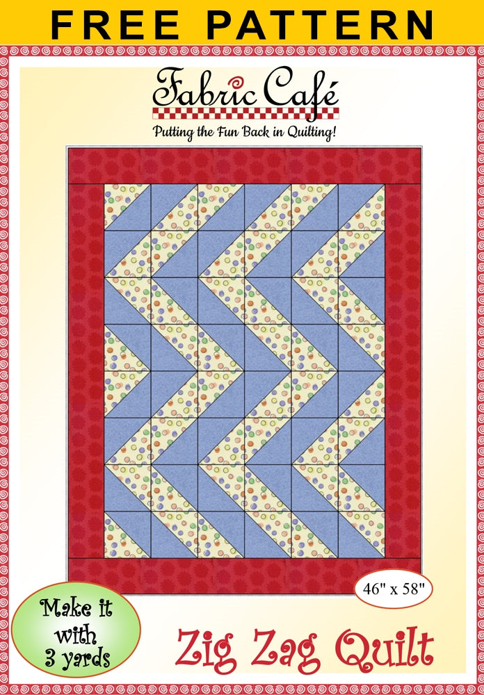 Fabric Café is excited to share our free 3-yard quilt pattern! You simply take three one-yard cuts of fabric plus a few hours and make a beautiful quilt top with binding and borders. The pattern includes an assembly diagram and step-by-step directions that make your cutting and piecing a breeze! Fabric Café offers several 3-yard quilt patterns that you can download for free, try one today!