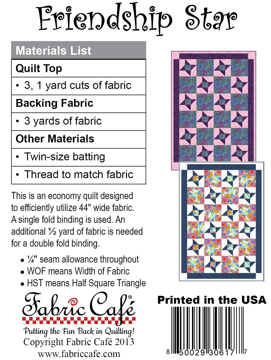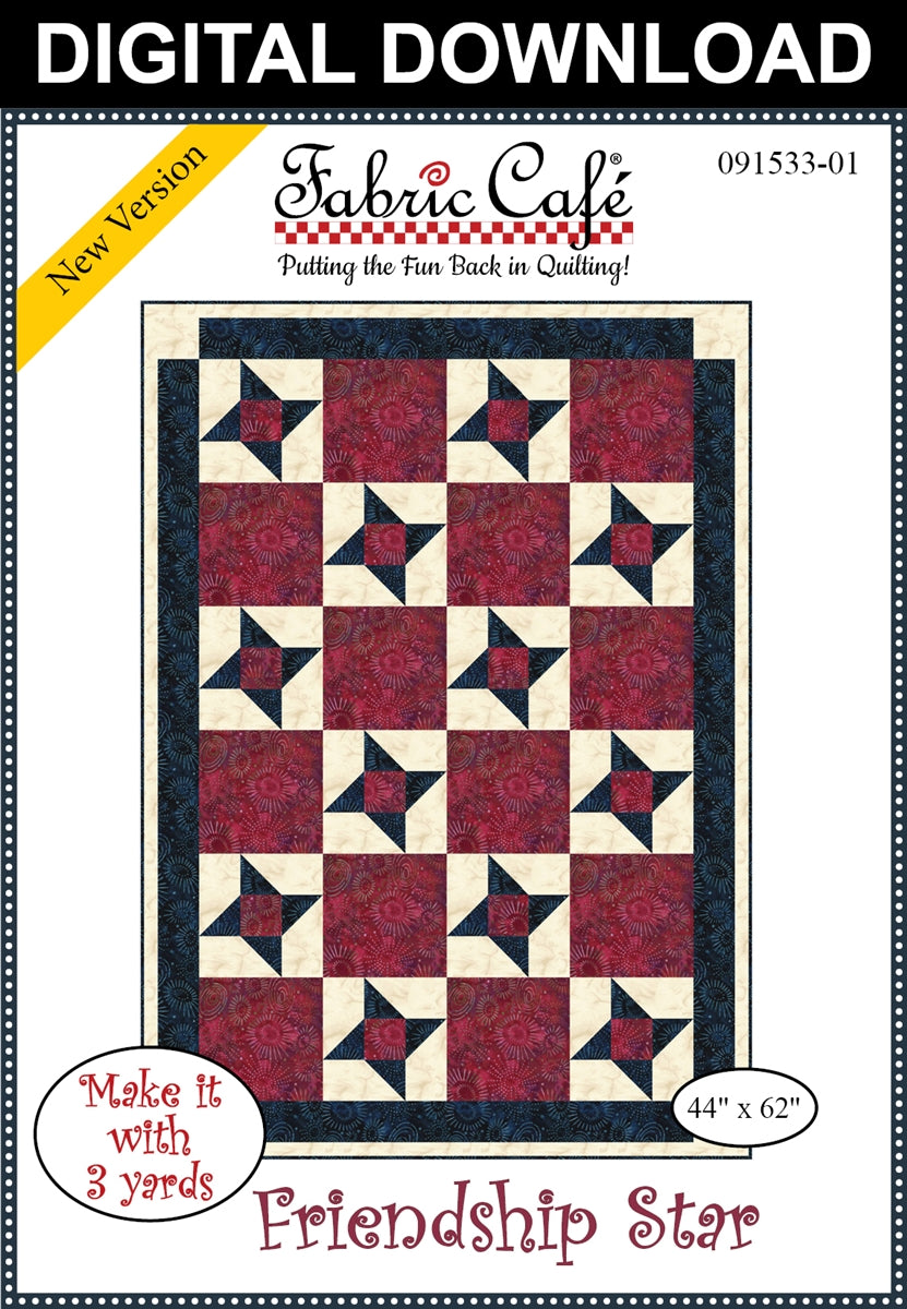 With this economically-price pattern, you simply take 3, one-yard cuts of fabric plus a few hours and make a beautiful quilt top with binding and borders. The pattern includes an assembly diagram and step-by-step directions that make your cutting and piecing a breeze!